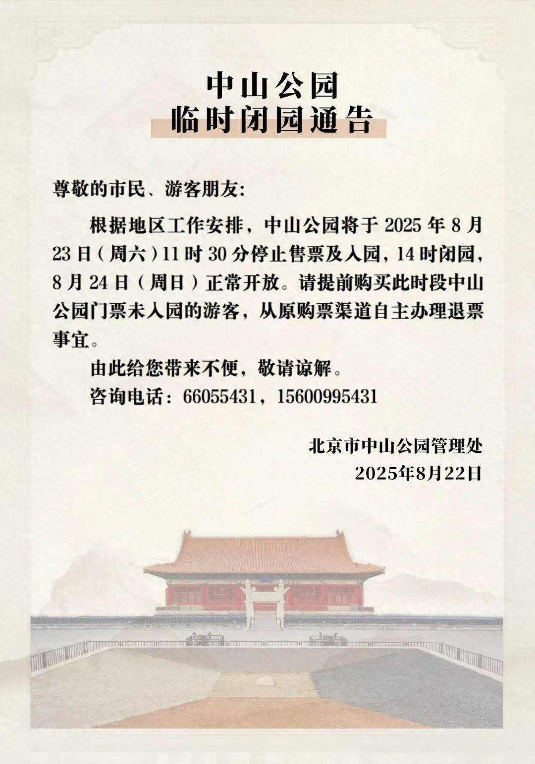 据北京市公园管理中心消息,8月23日、24日,北京部分市属公园开放时间调整,涉及中山公园、北海公园、景山公园、天坛公园等。