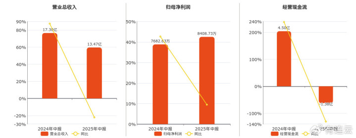 公司营业总收入为13.47亿元,较去年同报告期营业总收入减少3.83亿元,同比较去年同期下降22.13%。归母净利润为8408.73万元。经营活动现金净流入为-1.38亿元,较去年同报告期经营活动现金净流入减少5.87亿元股牛配,同比较去年同期下降130.60%。
